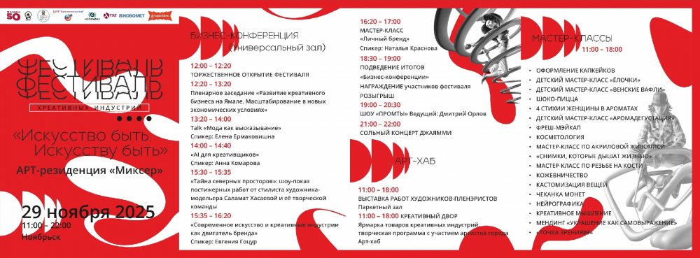 Благодаря насыщенной программе, фестиваль станет площадкой для обмена идеями, опытом и вдохновением среди профессионалов и энтузиастов в области креативных индустрий. Для бизнес-сообщества состоится конференция по темам «Искусственный интеллект» и «Мода», а также семинары по цифровым моделям бизнеса и другим актуальным вопросам. Для жителей и гостей города пройдут различные мастер-классы, дискуссии, выставка.