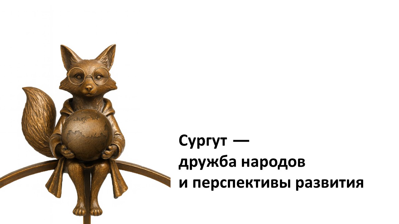 Я — Черный лисёнок, символ города Сургута, и я рад приветствовать тебя в Сургуте! Я здесь, чтобы напоминать всем о том, что мир — это удивительное место, где живут разные народы и культуры.